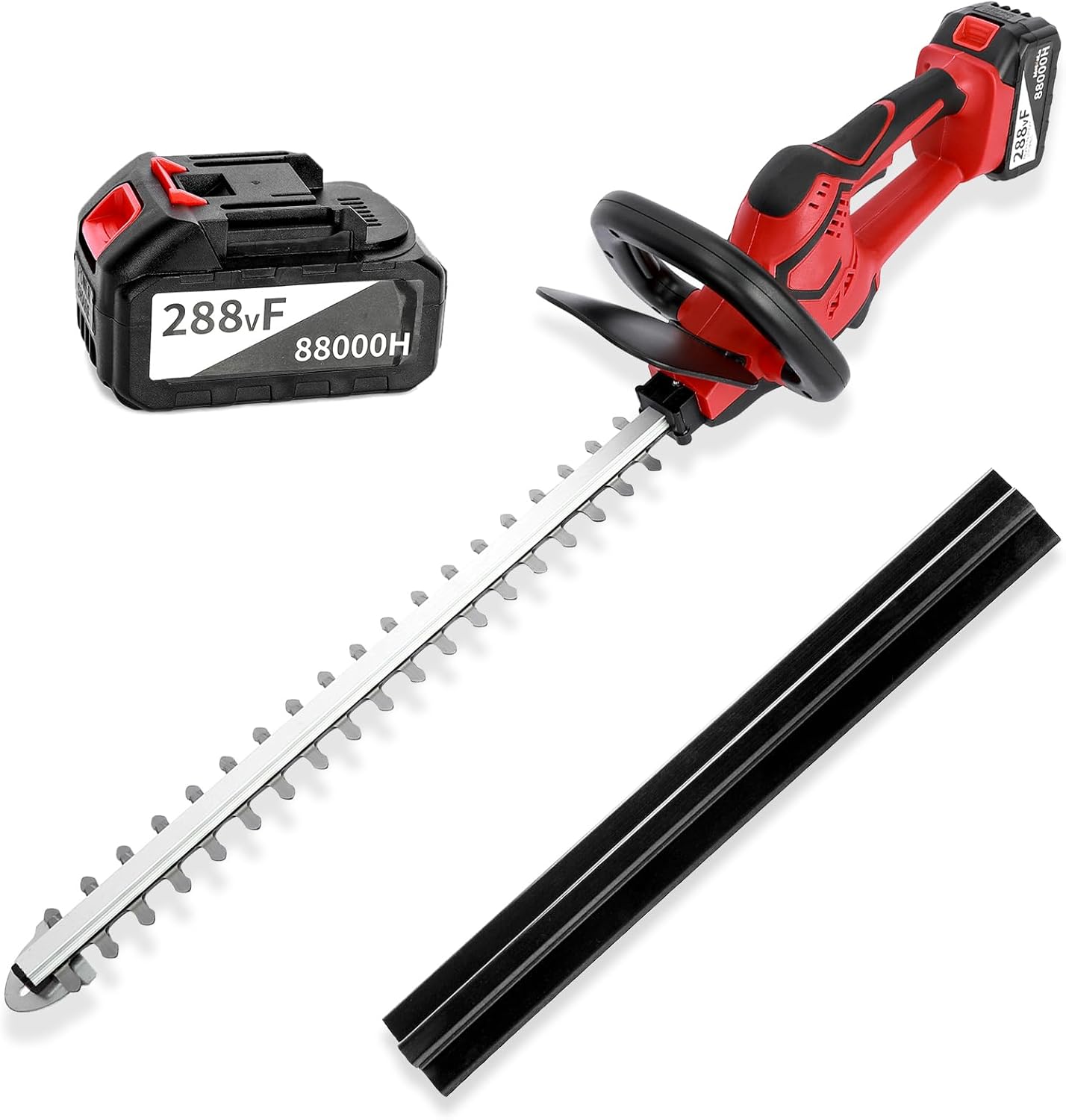 Description:Brushless and high power copper motor improves heat resistance and working efficiency. Large capacity battery allows you to charge once and work all day.Thicken and widen double-sided blade design makes it more convenient to trim. Thickened splash guard helps block branches and debris splash to protect your eyes.Double safety switch design avoids instability caused by one-handed operation, increasing the stability and safety of operation. Anti slip handle design increases friction and is comfortable to hold.Smart chip helps cut off the main power supply to protect circuit components when the machine breaks down. Heat dissipation hole design makes it not easy to burn the machine after working for 72 hours.Item Name: Hedge TrimmerMaterial: Copper,Steel,ABSNoise: 84.4dBACharging Time: 2hPower: 1880WRotate Speed: 1400rpmPower Interface: Applicable for MakitaMotor Type: Pure Copper Brushless MotorBattery: 1 x 21V 4Ah Battery (Included)Resistant Temperature: 300 Degrees CelsiusBlade Head Type: SK7 Double-Sided Reciprocating BladeFeatures: High Efficiency, Powerful Motor, Sharp EdgeSize Details:Cutting Capacity: 3cm/1.18" (Approx.)Blade Length: 5.1cm/2.01" (Approx.)Package Includes:Style A:1 x Hedge Trimmer1 x Protective Shell1 x 2-in-1 Screwdriver1 x English User ManualorStyle B/C/D/E/F/G/H/I:1 x Hedge Trimmer2 x Batteries (For Makita)1 x 100-240V Power Adapter1 x Protective Shell1 x 2-in-1 Screwdriver1 x English User ManualorStyle J/K:1 x Battery (For Makita)
